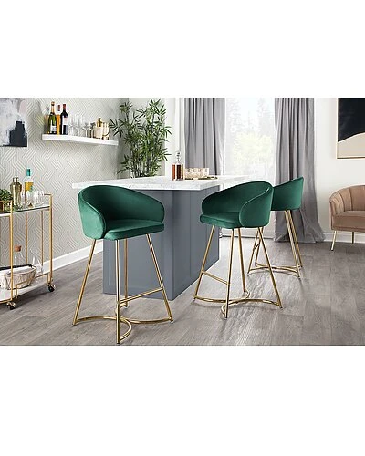 - Cece Contemporary/Glam Counter Stool in Gold Steel and Green Velvet by LumiSource – Set of 2