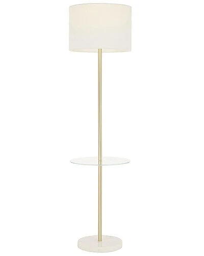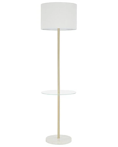 - Short on space? We’ve got you covered with the functional and sleek design of the Chloe Shelf Floor Lamp by LumiSource. Featuring a gold neck, a round glass shelf, marble base a white linen shade, this modern beauty will light up any space!