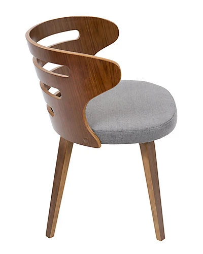 - Design details: Made of wood, polyester fabric, foam; slotted and curved wood back, tapered legs, padded seat