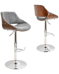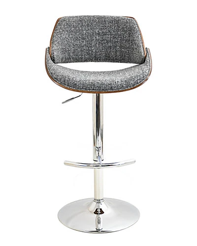 - Design details: Made of wood, metal, polyester fabric, foam; wide scooped, contoured seat, curved back, woven upholstery