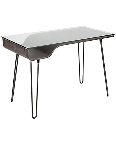 - Design details: Made of metal, glass wood; hairpin legs, a bent wood nook, and clear tempered glass top