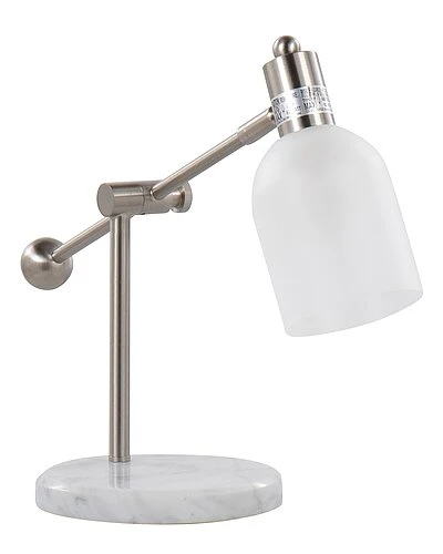 - Add a touch of simple chic and sophistication to your room with the Marcel Table Lamp by LumiSource. Showcasing a white marble base, sleek metal stand, and glass shade, The Marcel Table Lamp will add a luxurious appeal to your bedroom, office or living space.