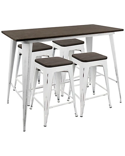 - Design details: Made of pressed, wood grain bamboo, metal; includes one table and four counter stools